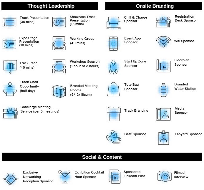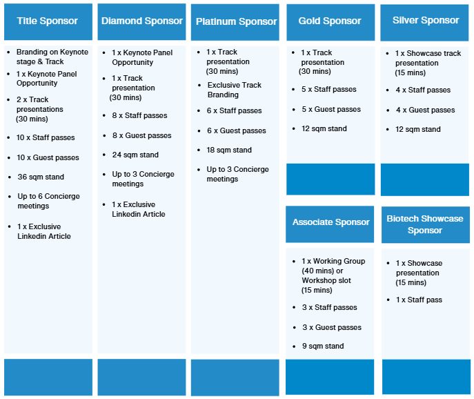 Heightened prominence on the programme by having your logo included on the agenda and track title updated to be Track Name, sponsored by Company Name.