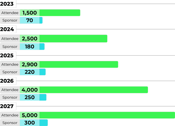 5,000 attendees and 300 sponsors by 2027.
