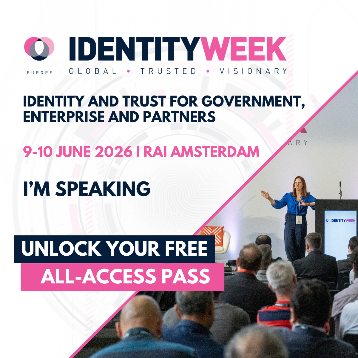 You'll find us on Twitter and LinkedIn this year, promoting the event, special promotions, partner news, conference updates and all things Identity Week Europe 2026! Make sure you follow us and remember to tag us in any #IdentityWeekEurope #IDW2026 posts.